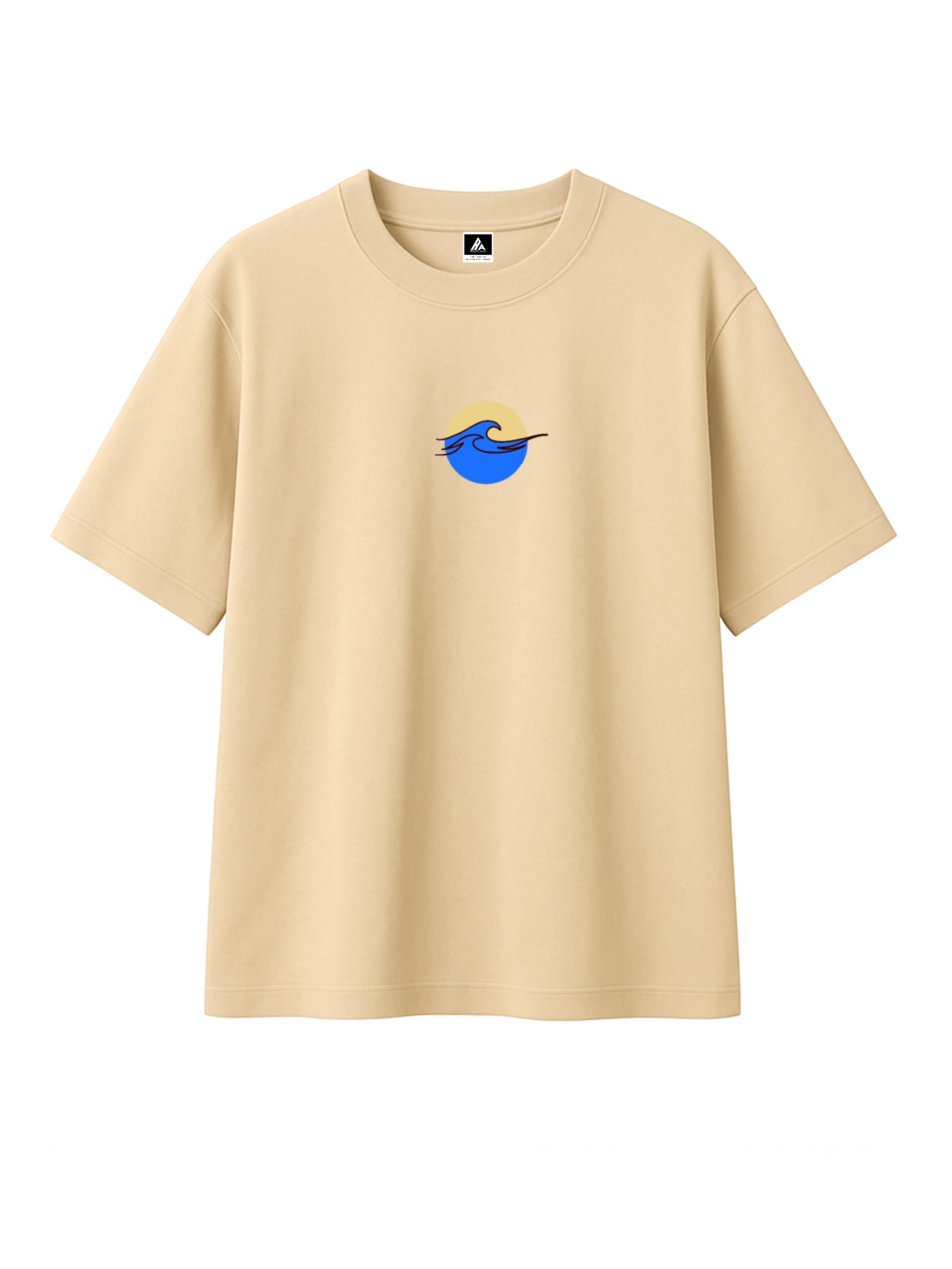 T-shirt Minimaliste Brodé 100% Coton – Design Vague (F)
