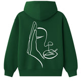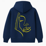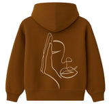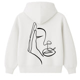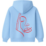 Un seul trait, continu, comme un souffle, dessine un visage en train de se révéler. Une main, levée, n’est pas là pour cacher, mais pour inviter à regarder autrement. C’est une pause dans le visible, un interstice dans le réel. Le regard s’en échappe, entre mystère et franchise.
