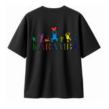 Des silhouettes hautes en couleurs, en plein mouvement, entourent un coeur levé bien haut : ce t-shirt capture la joie simple de bouger, d’avancer et de se relever ensemble.