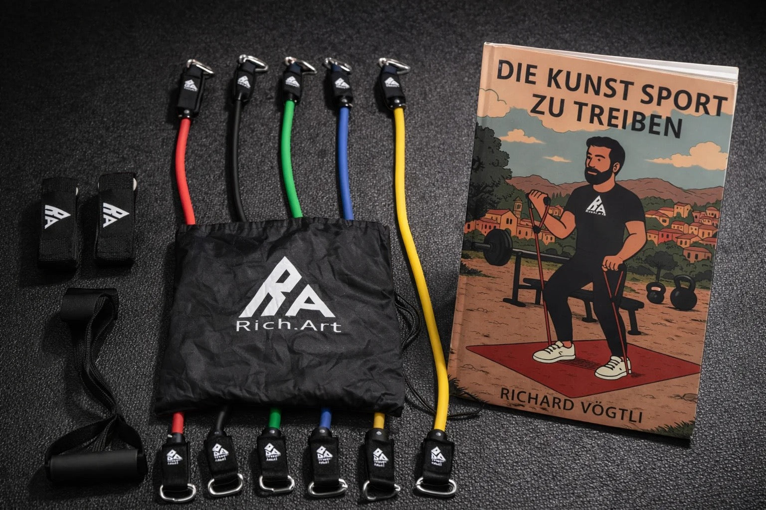 Avec le Pack Entraînement Complet Rich.Art, vous ne recevez pas seulement du matériel, mais une méthode pour bouger régulièrement et efficacement. Installez-vous, ouvrez le livre, accrochez vos élastiques… et lancez votre séance, où et quand vous le souhaitez.